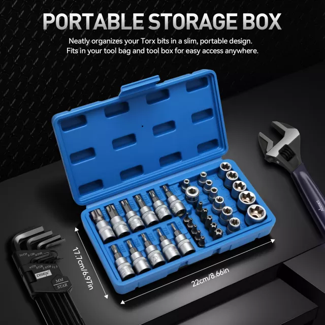 This socket and bit set is ideal when working on cars, motorcycles, appliances, industrial equipment, and any project involving Torx or tamper-resistant fasteners. It is especially useful for maintenance, repairs, and assembly tasks where standard tools fall short.